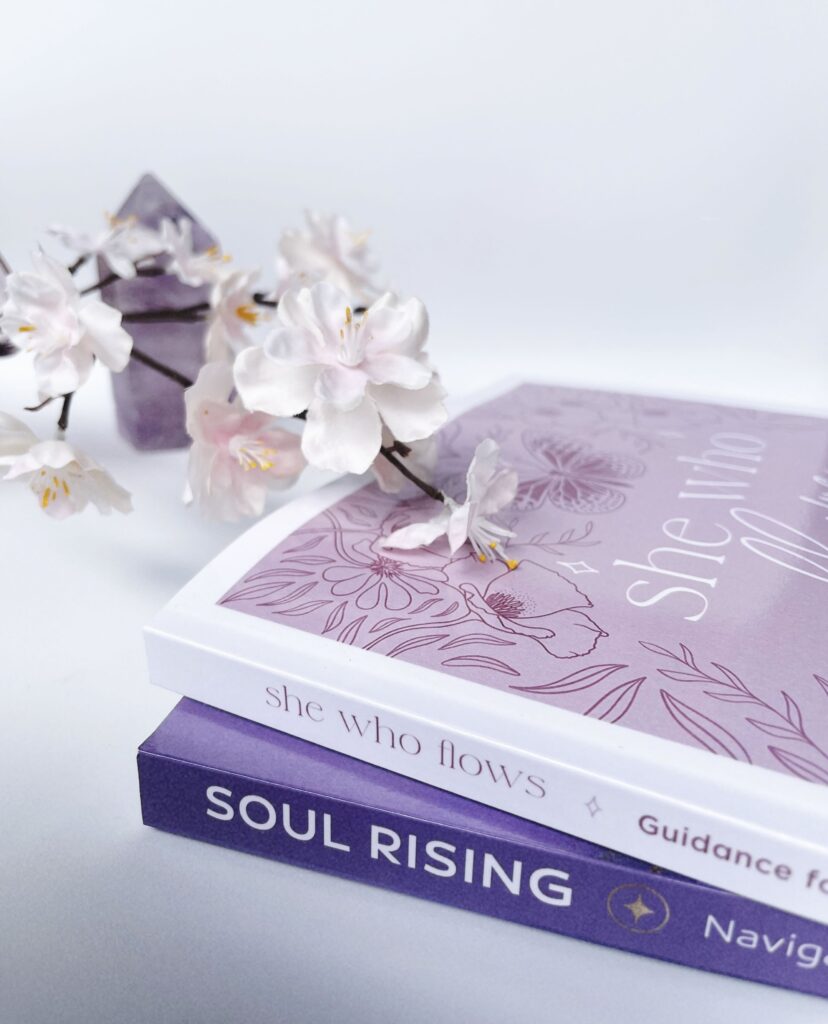 I’ve had the privilege of contributing chapters in two multi-author anthologies – both available now: Soul Rising: Guidance for Navigating Your Spiritual Awakening (2025) & She Who Flows: Guidance for Surrendering to the Divine Feminine and Witnessing the Miracles of Self-Love (2026).